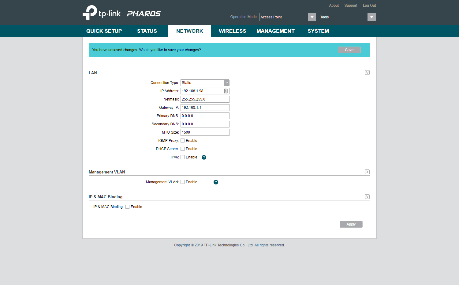 Takže na CPE220 v záložce Network vypnout DHCP?