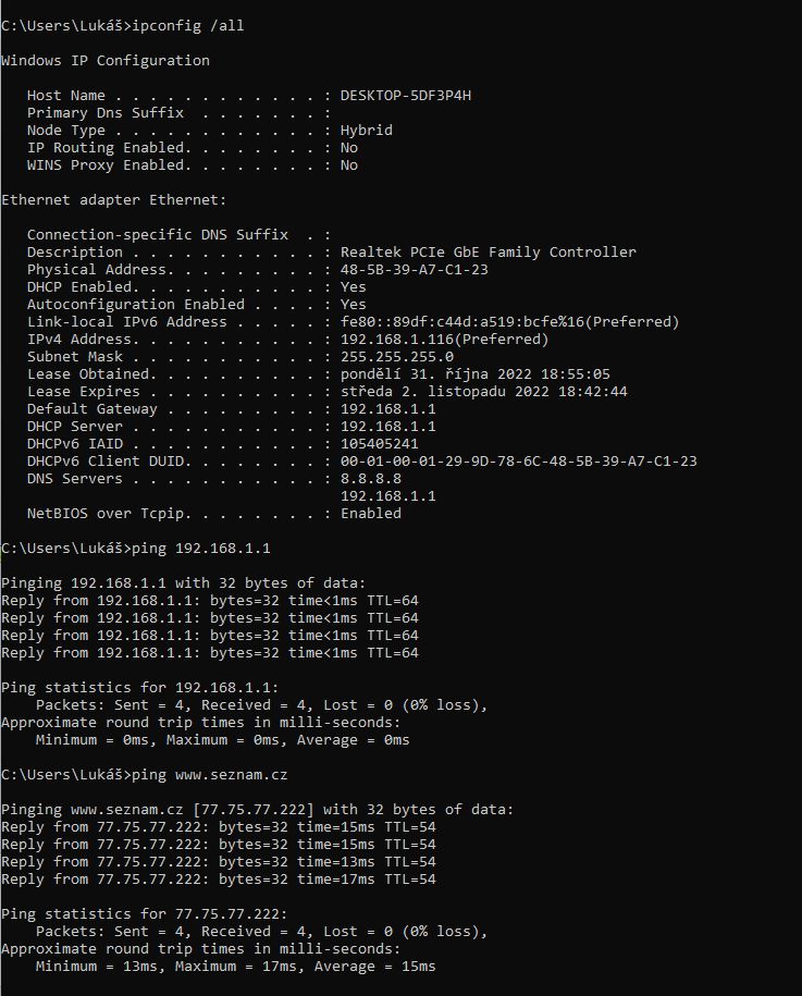 Pečlivě si prostuduj v mém podpisu diagnostiku sítě. Napiš k čemu jsi došel.