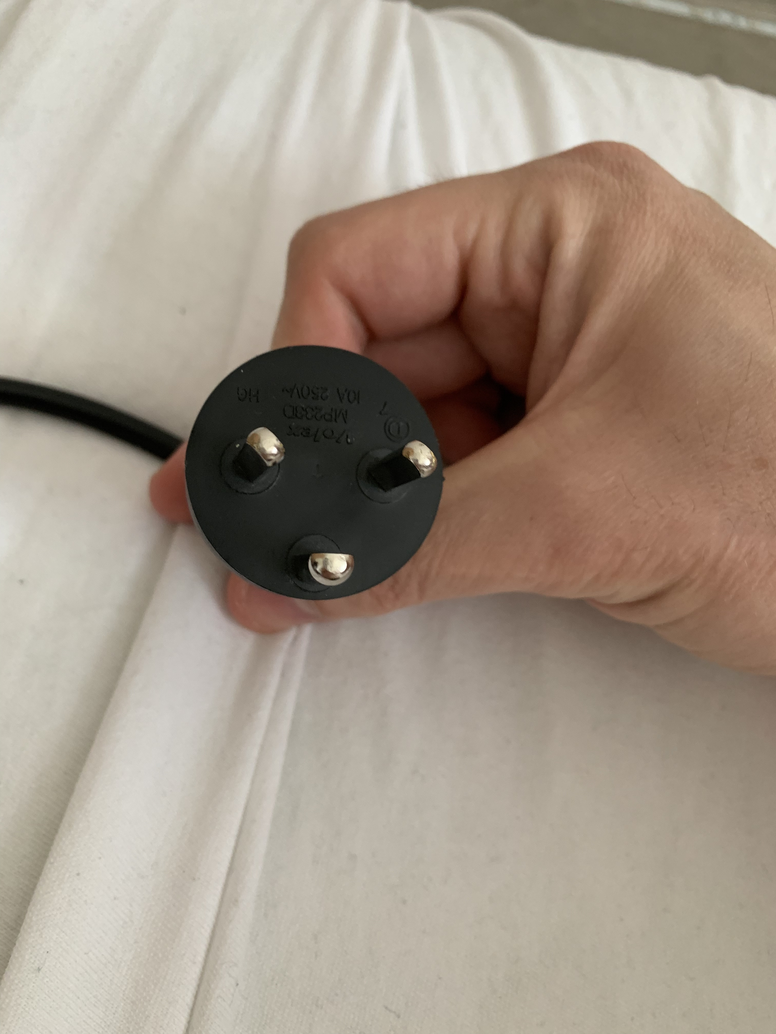 Protoze potrebujes napajeci snuru od notebooku, ne od radia ktera ma jen dva.