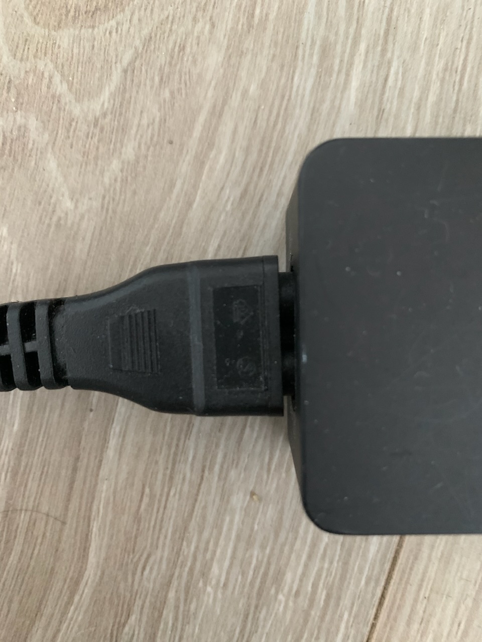 Co je na druhem konci te snury ? Ta snura by mela jit vyndat z napajeciho adapteru.