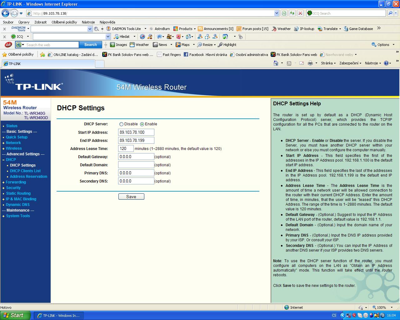 S nastavením DHCP routeru jsem se ani nezmínil.