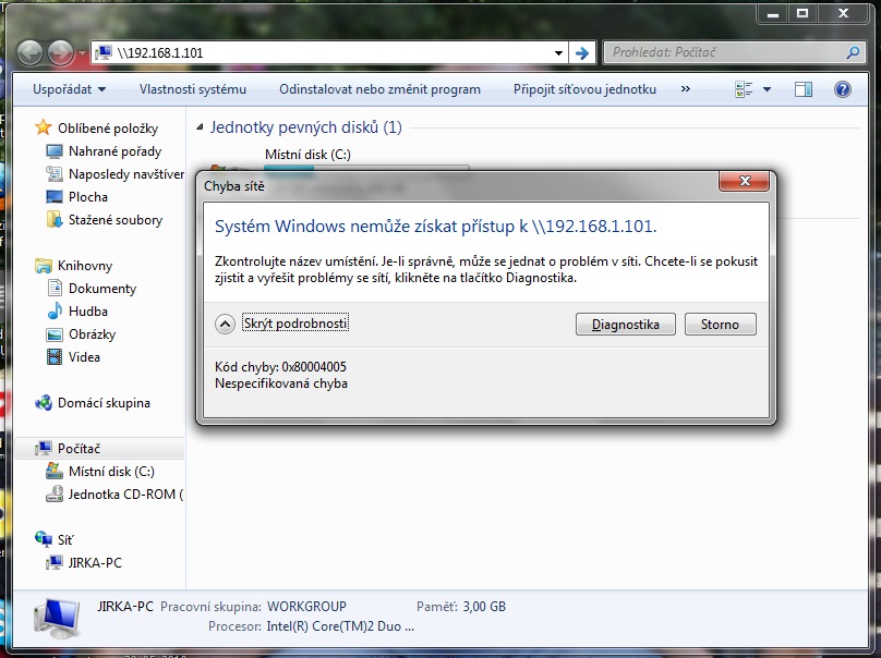Oba počítače mají Win 7 Ultimate 32 bit. Myslí že na sebe nevidí, posílám screen. Výraz ping jsem určitě slyšel, to bude něco s propustností a funkcí sítě, ale v životě jsem to nědělal. To bude zřejmě asi přes příkazový řádek... Prosím o návod. Díky.