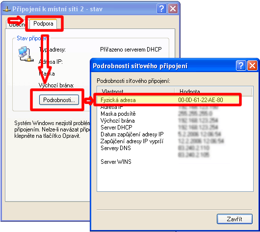 Rozklikni Připojení k místní síti a koukni do podrobností zda tam jsou všechny informace, příklad obrázek.