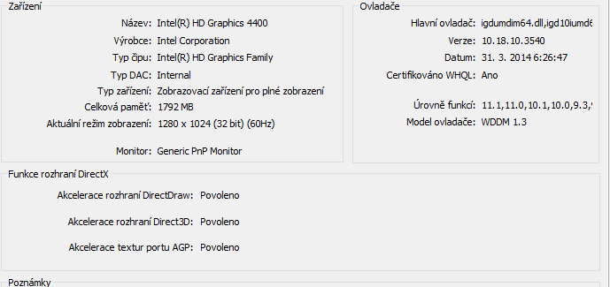Nepřeceňoval, podobné FPS mám na integrované. Máš aktuální ovladače grafiky? Pro jistotu nám dej screen z dxdiag záložka Zobrazení (Start->dxdiag.exe).