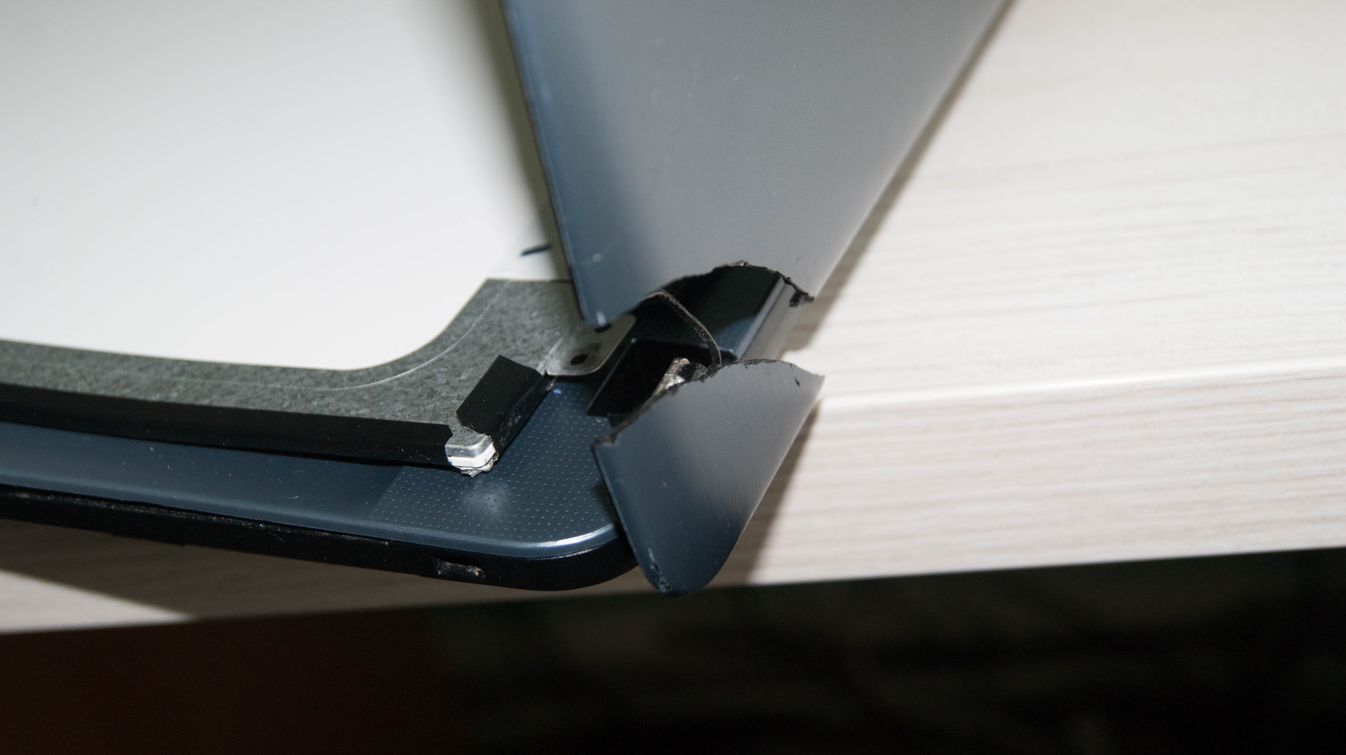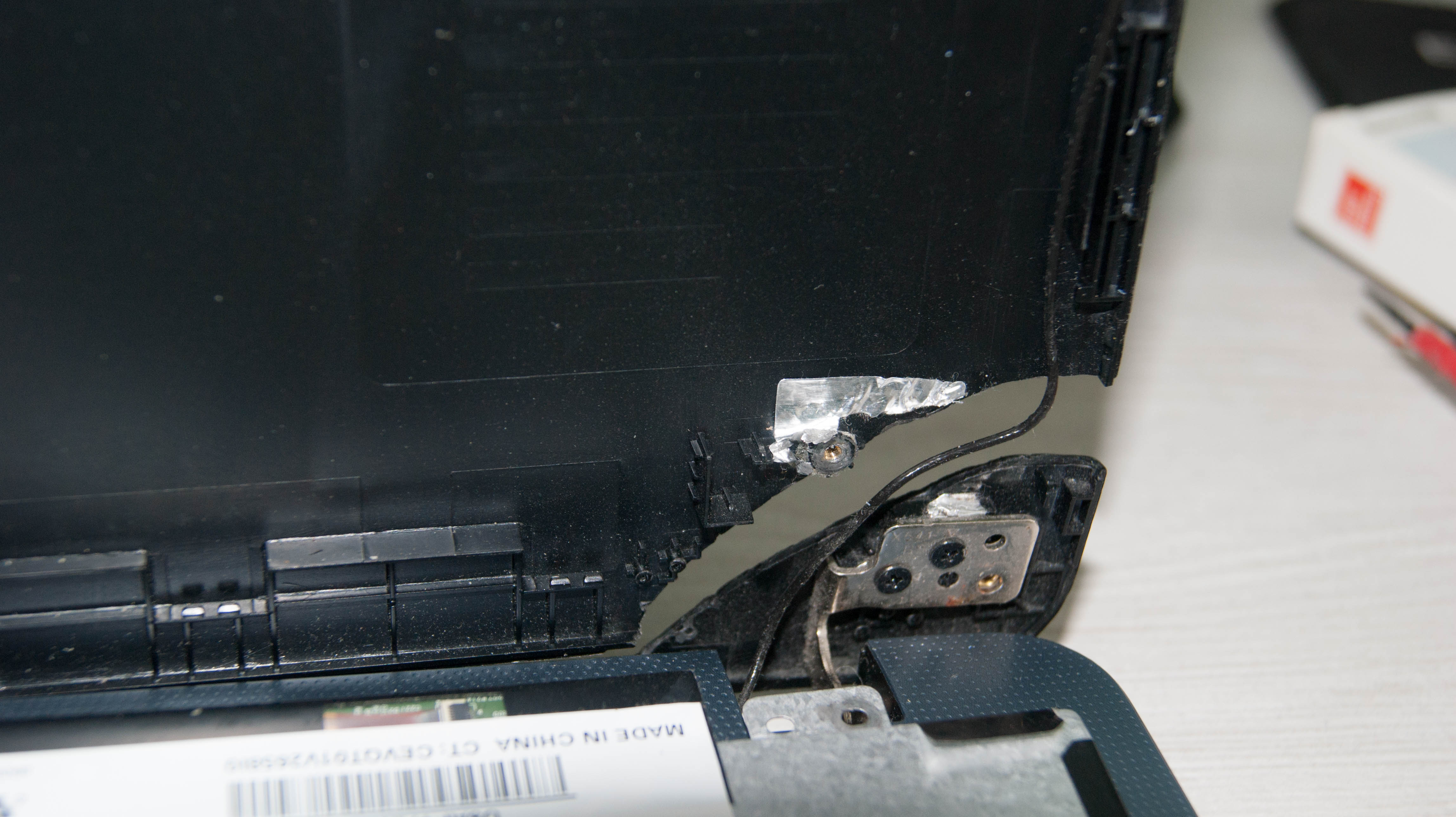 no problém, ktorý neviem ako vyriešim je, že na ntb je odtrhnutý roh, presne v mieste kde sú pánty.