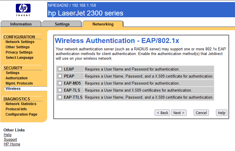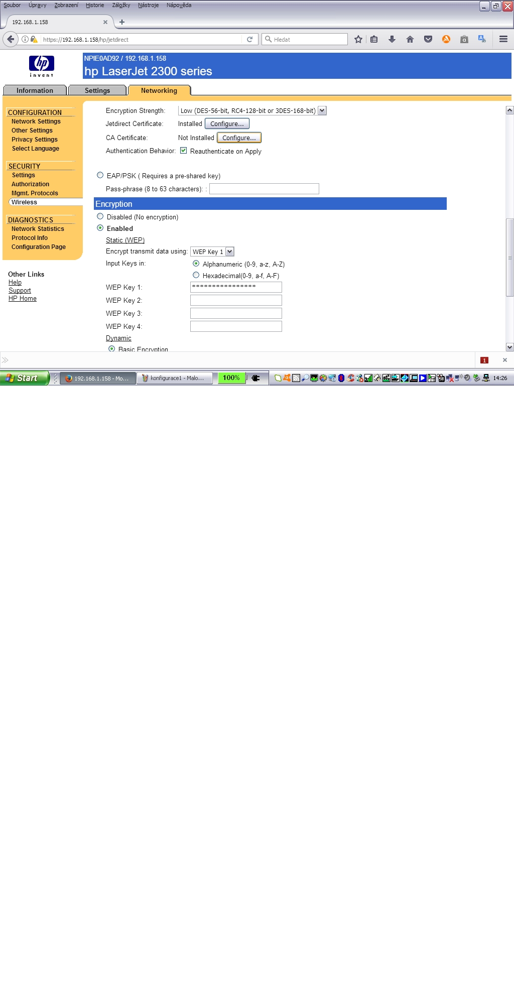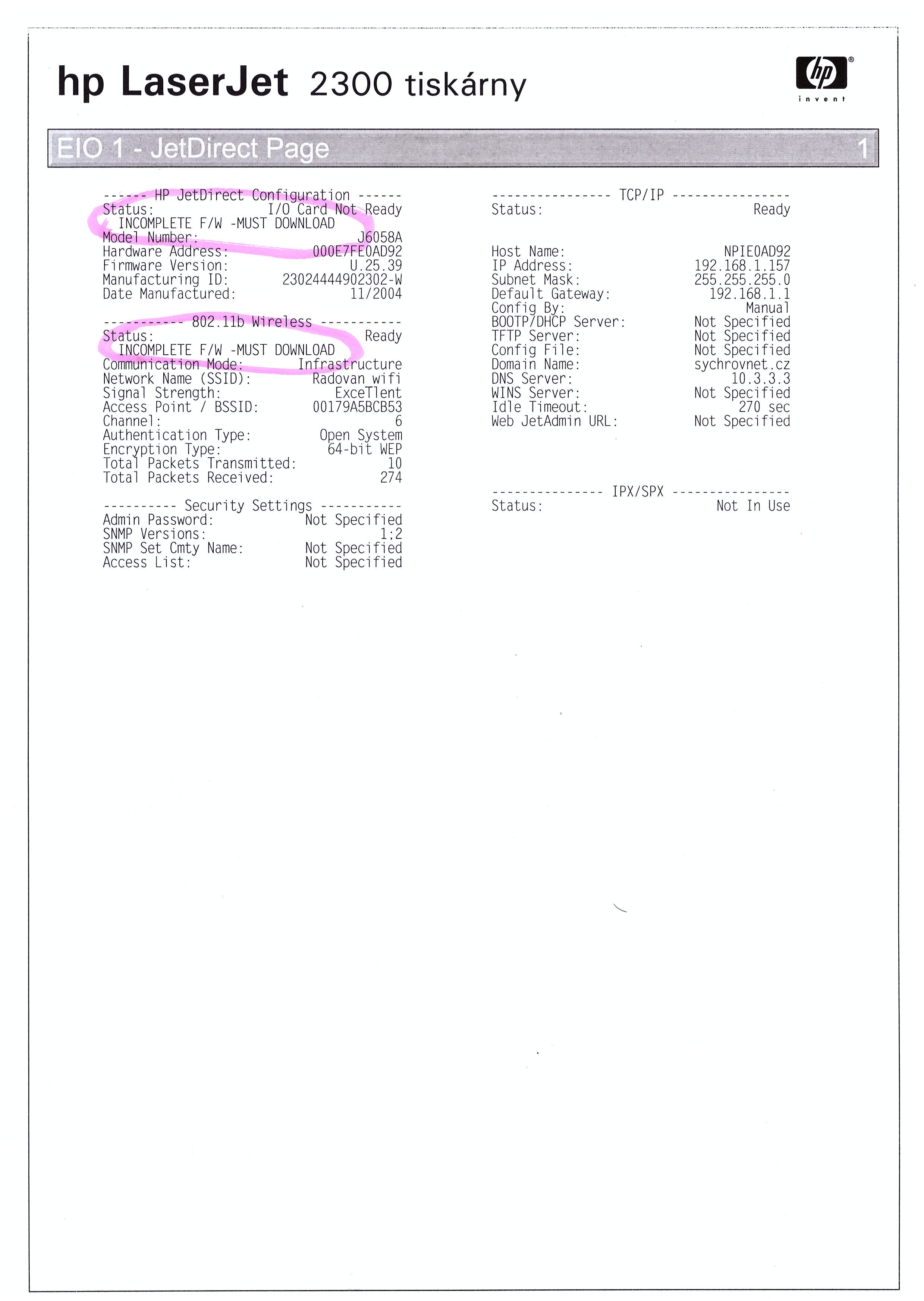 Re: HP Jetdirect J6058A WiFi chyba fIrmware
