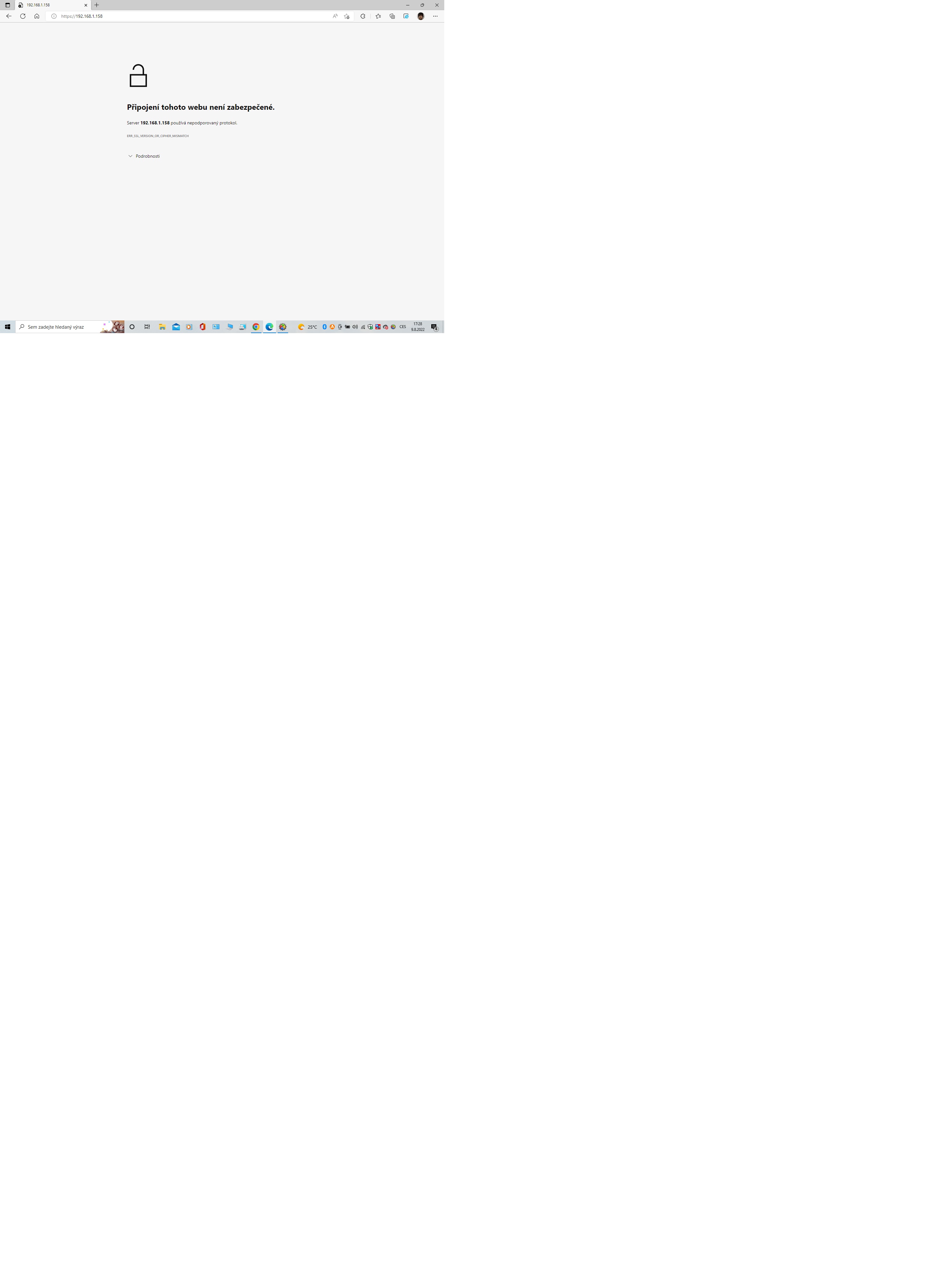 A další věc ve windows XP když zadám tu IP adresu toho serveru tak jsem musel zadat bezpečnostní vyjímku jakousi na certifikát a pak se to zobrazilo ta tiskárna, ale ve windows 10 to vůbec nejde se přihlásit na tu IP adresu toho serveru- tam to napíše certifikát neplatný či co- je to tím že je to staré to zarízení?