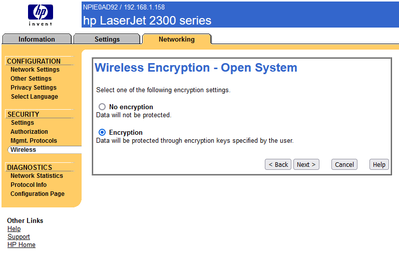 Sehnal jsem WiFi print server HP Jetdirect J6058A ten teda v celku dobře fungoval až na to že má typ šifrování pouze WEP - jak prosím docílit aby měl šifrování i WPA? V návodu je uvedeno i WPA- viz obr. proč to tam teda je když ta možnost tam není možná navolit?