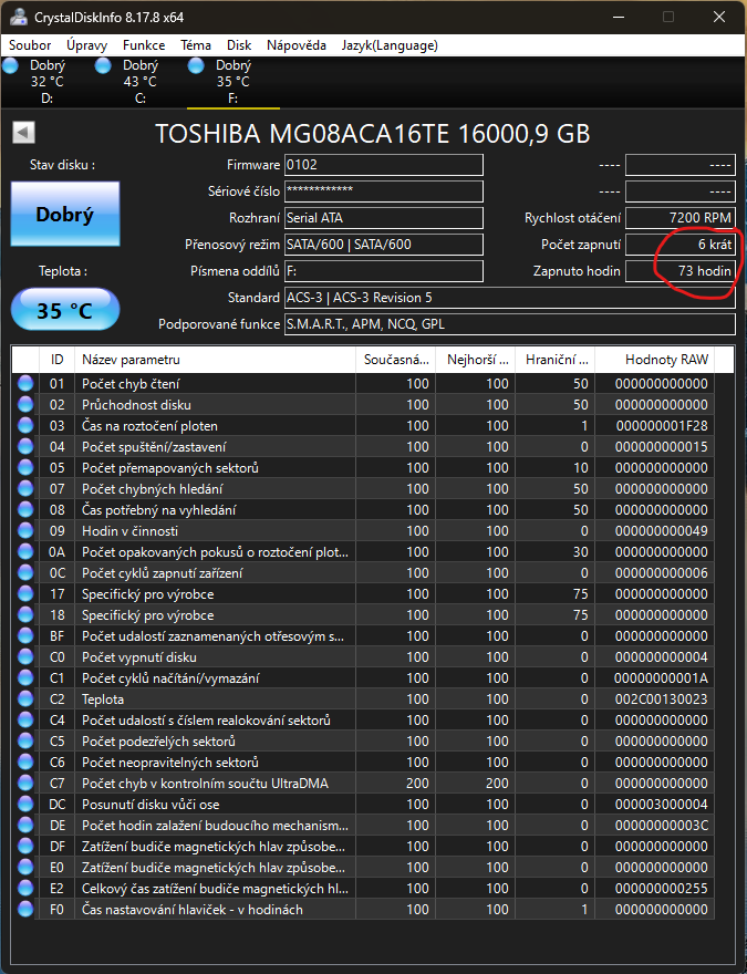 Re: HDD Toshiba 16TB - SMART - kontrola