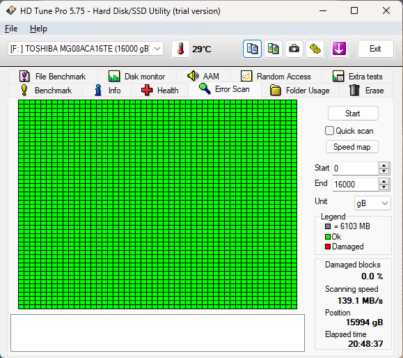 HDD Toshiba 16TB - HD Tune Pro - Error scan