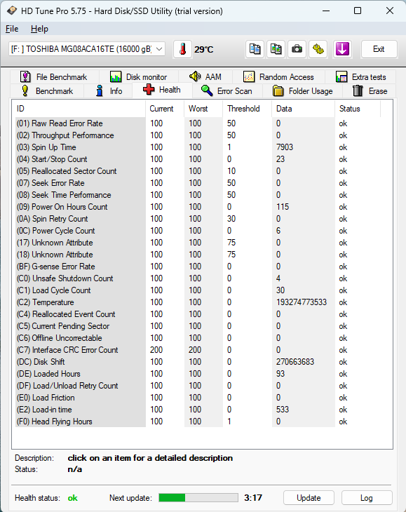 Prosím o kontrolu SMARTu HDD Toshiba 16TB.
