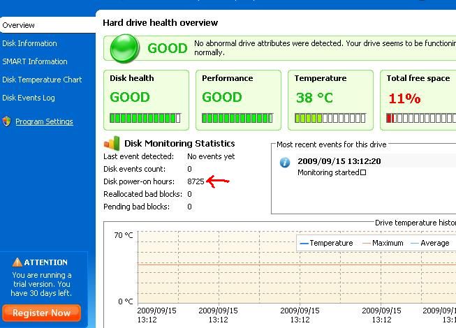 Lze se spolehnou na měření tohoto programu? Pokud jsou alespoň přibližně data správná,z toho by vyplývalo,že byl ten "novej" HDD v pohotovosti 1975 hodin,že?