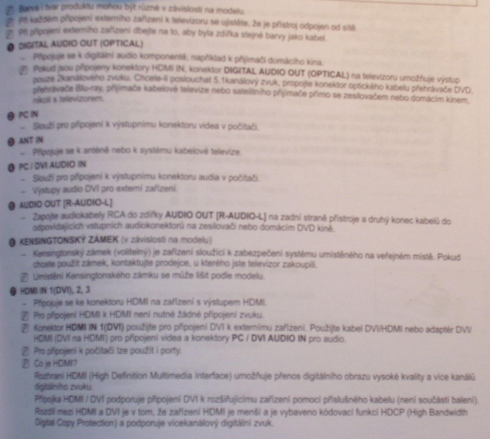 podle navodu (foto schematu jsem přiložil na konec) je zadní část kde jsou audio L-R in, který mě zajímaj v oblasti kam se podle navodu připojuje set top box a podobný věci (jsou to 3 cinche modry a zelený barvy - nemám s tím zkušenosti) z toho vyvozuji že tyto audio vstupy fungují pouze v případě kdy signál vstupuje přez tyto 3 cinche a tudíž s tím nic nenadělám.