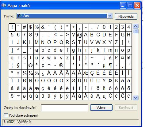 Start - všechny programy - příslušenství - systémové nástroje - mapa znaků .