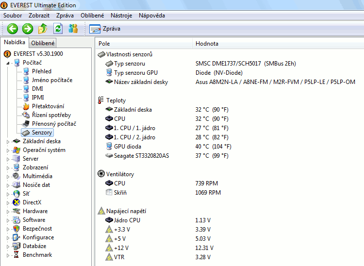 Dobrý den,mám základní desku asus m2r-fvm a mám problém základní deska my ukazuje v Everestu že má teplotu 32 stupeň http://www.uloz.to/6515042/bez-nazvu-png ,ale to není zadána pravda když chytnu na žebra základní desky tak se pokaždé se spálím a když chytnu na grafickou kartu na žebra tak jsou cela studená kde muže byt problém????
