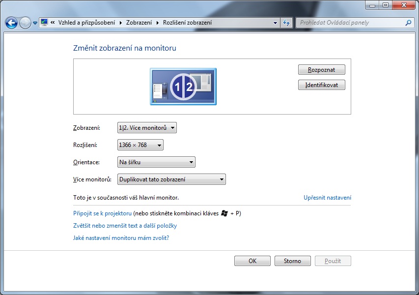 (TV zvládá FULL HD). Na FULL HD mi to jede, když dám, aby běžel čistě jenom obraz na TV. Dotaz proto je, jak to nastavit, aby na TV jsem měl 1920/1080 a na ntb jsem měl taky max rozlišení (1366/768) a obrazovky běžely současně. Snad jsem to napsal dost jasně EDIT: přiložil jsem ještě screen, jak to mám nastavený.