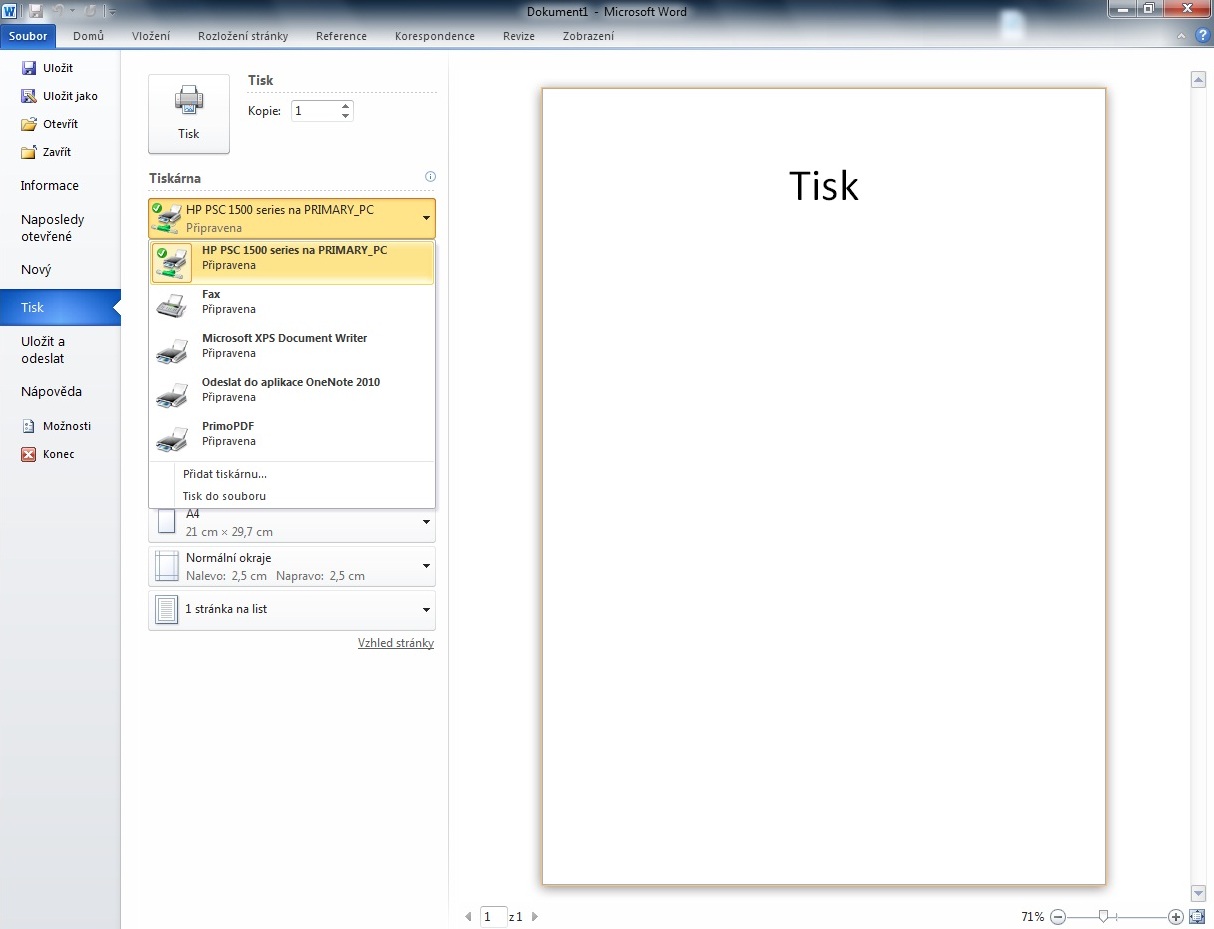 A když dáš tisk třeba z wordu tak ji taky vybereš v seznamu zase u ní máš zelenou fajfku dáš tisk a co se stane?