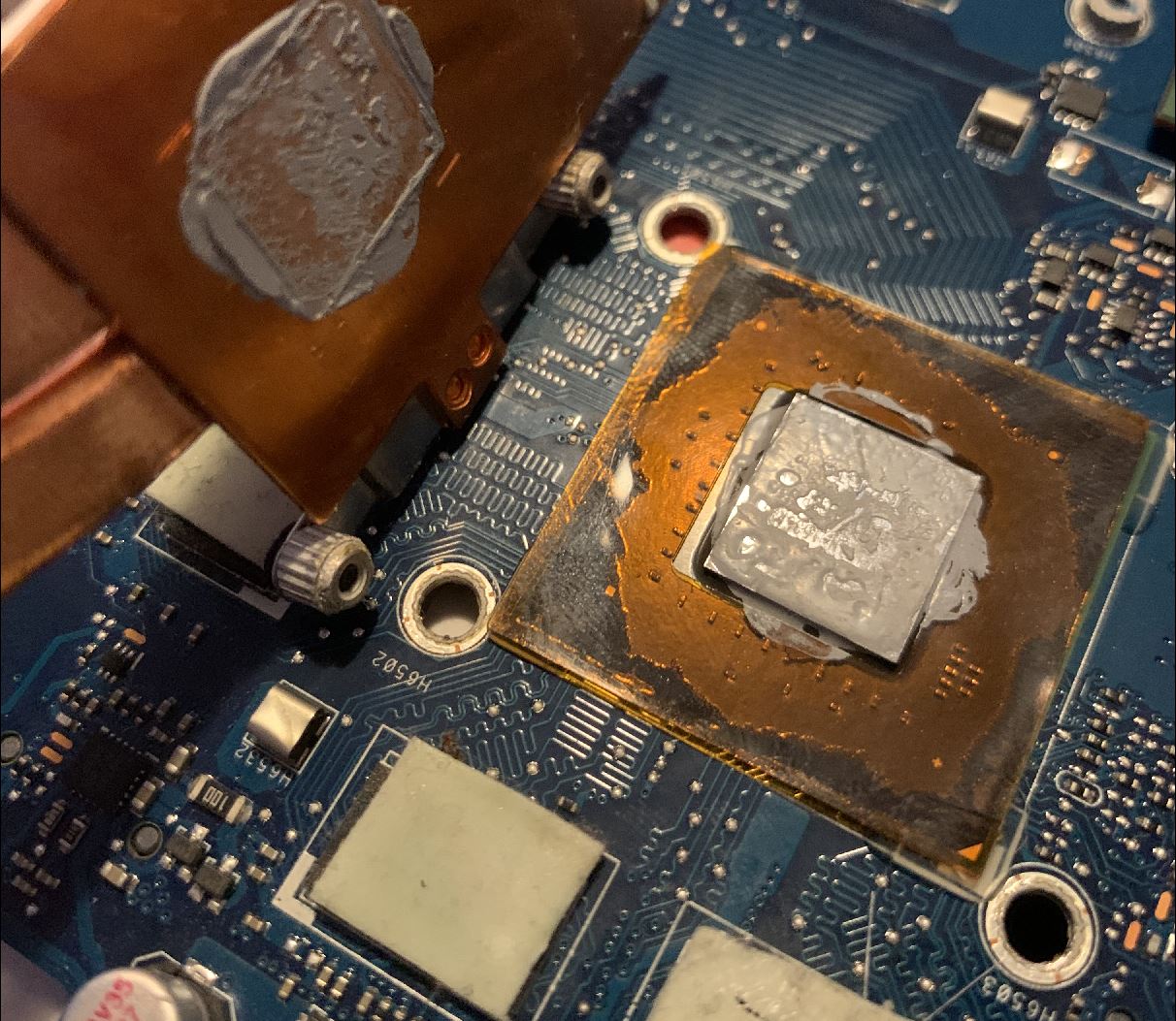 Update: napájel jsem heatpipe cínem z druhé strany desky, abych vyloučil ukápnutí cínu na nějaké zranitelné místo MB. No přepastoval jsem to kompletně, protáhl vzduchem, vyměnil polštářky, vše smontoval a spustil.