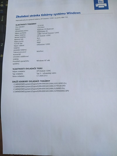 Jinak to není laserjet 1200 ale deskjet 1200C/PS to je ještě větší historie