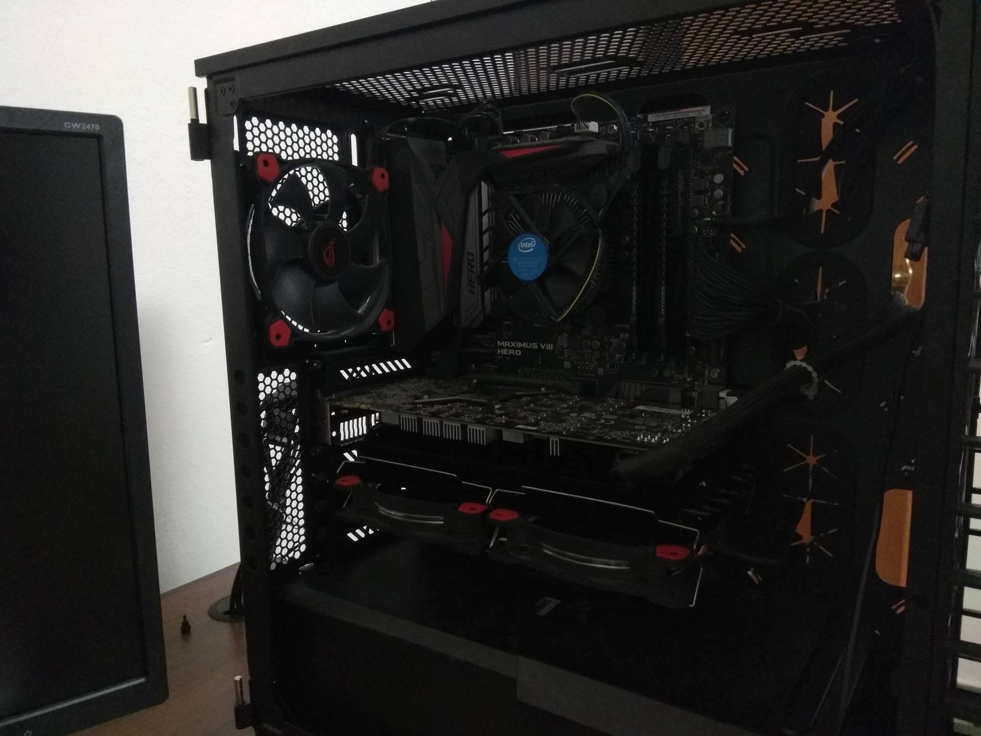 Montáž se teda neobešla bez komplikací, nejdřív jsem nenamontoval backplate, takže chladič na GPU nedržel jak měl a málem jsem ji spálil a při montáži větráků jsem si zarazil ten plech z pasivu pod nehet, takže opravdu skvělá zkušenost. :lol:
