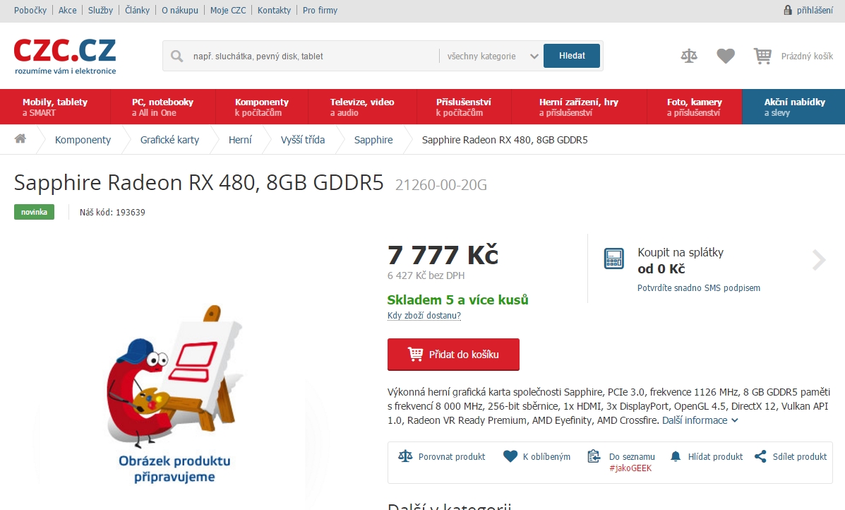 A jsem zvědav, kdy se na Alze někdo uráčí a bude tak laskav tam dát zpátky tu RX 480. Chápu, že tam byl asi někdo fakt příliš aktivní a těšil se na to, a tak to tam musel pořád dávat a pak mu to asi mazali jak si toho někdo jiný všiml, ale furt to tam dokola dávat do nabídky a mazat a nakonec to tam stejně nemít v datu vydání je docela fail... Asi tam mají problémy s komunikací.