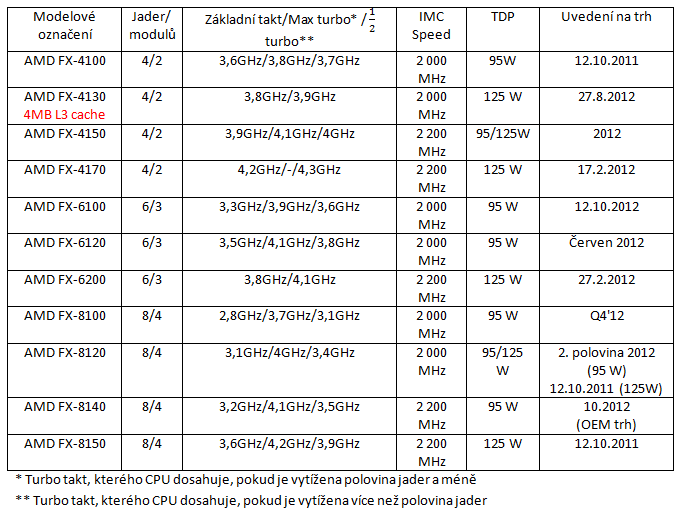 EDIT: Doplněny nové modely AMD FX-8320E, AMD FX-8370, AMD FX-8370E