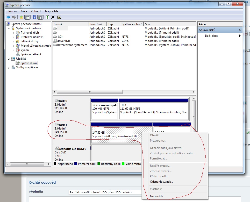 Pokud ne, tak vloz obrazek se Spravce zarizeni a Spravy disku.
