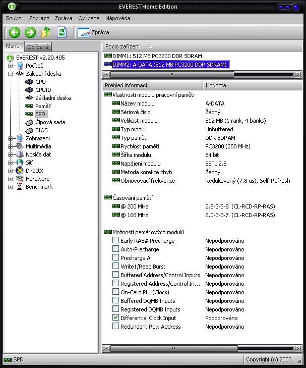 Velikost modulu 512 MB (1 rank, 4 banks)
