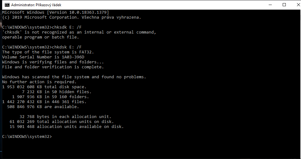 když spustím chkdsk tak to napíše že nejsou žádné problémy