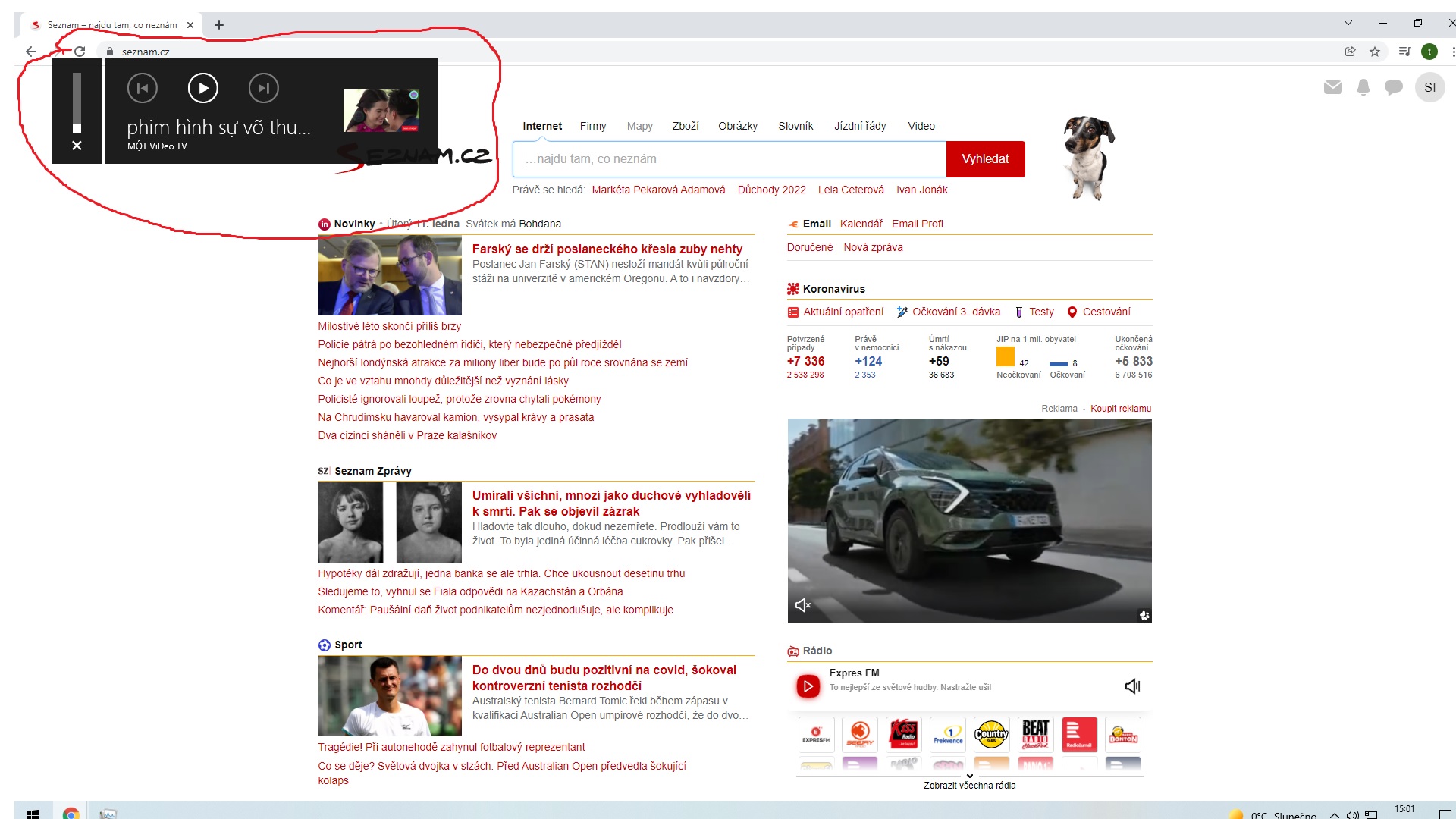 Máš tam nějakou havěť, je potřeba to odinstalovat. První co bych zkontroloval jsou položky po spuštění. Pak bych se podíval na běžící procesy. Pokud se přehrává video, tak to bude vytěžovat procesor, takže si to seřaď podle spotřeby, aby se to lépe hledalo.