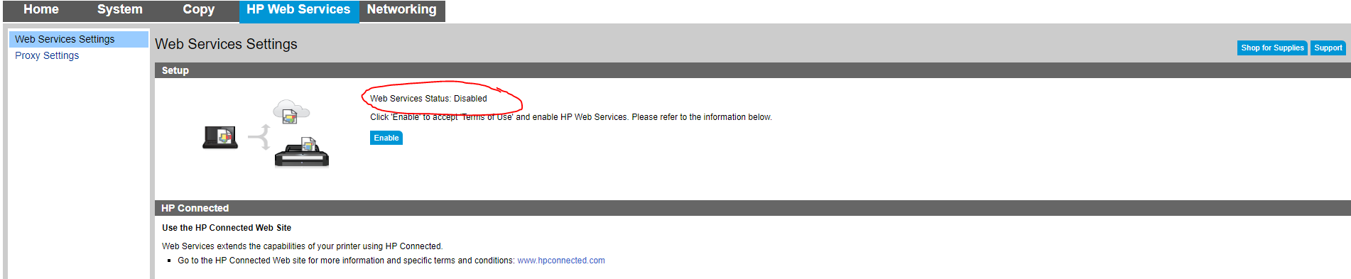 Prihlas se pres prohlizec na webove rozhrani (IP tiskarny) a tam odeber "Webove sluzby" (Web Services) a restartuj tiskarnu.