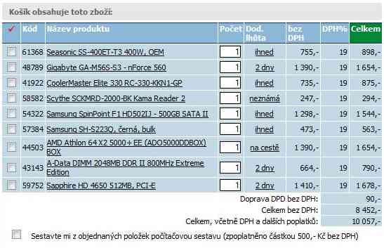 rodiče by chtěli počítač v ceně kolem 10+ (jsou ochotní investovat až do 20K, ale to se mi zdá až moc). Používají ho především na surfování po netu, hraní her (typu Solitaire a FreeCell...) a práci s Office (prostě nic extra náročného jako 3D hry a tak - zatím operují na PC s RAM 192 MB