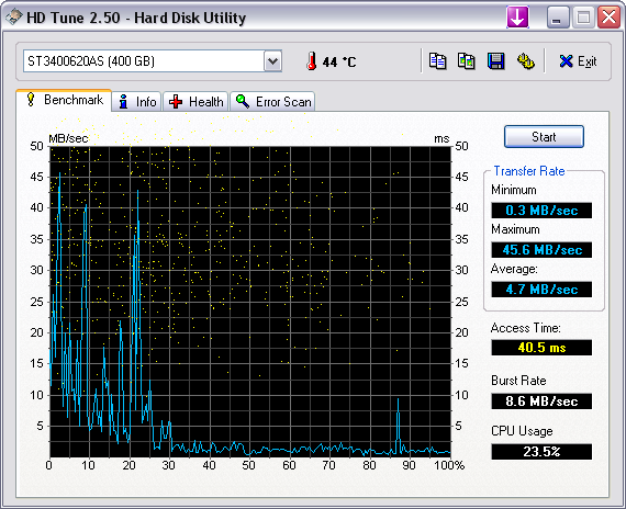 Jinak je zajímavé, že po té minutě se rozjede. Ješě to nemusí být v disku, ale v řadiči. Ideálně tento disk zkusit otestovat na jiném PC taky v hdtune