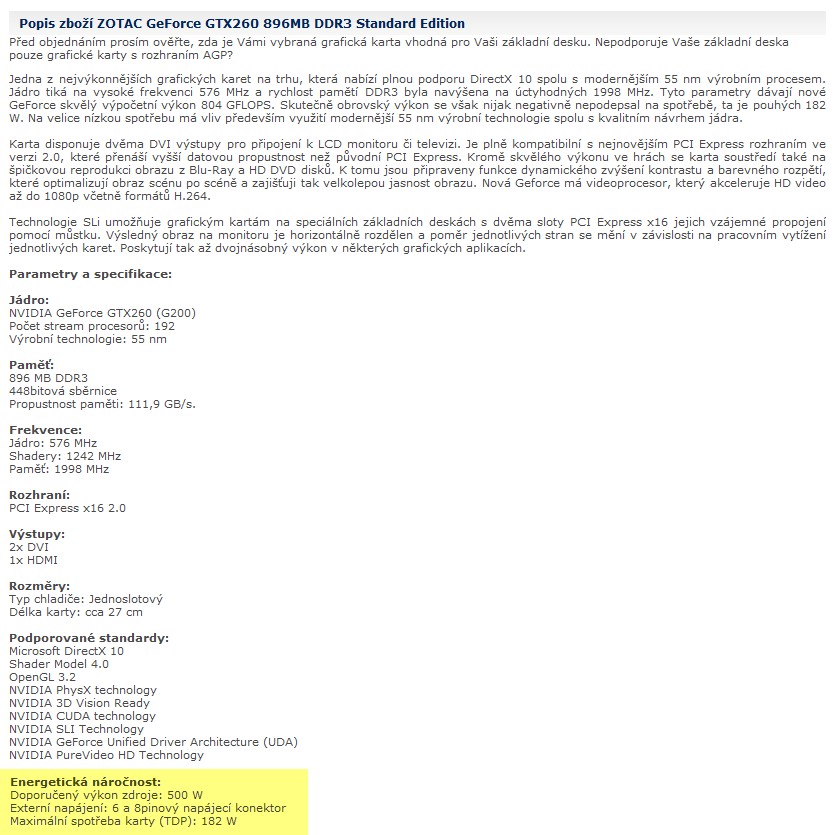Doporučený výkon zdroje mi to hodilo něco okolo 400W.
