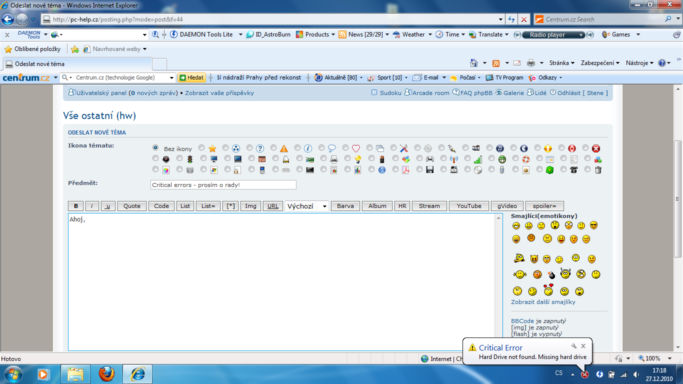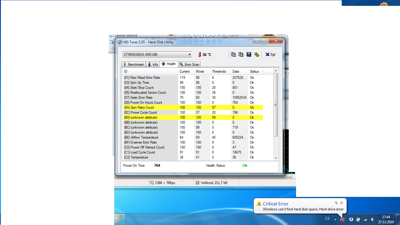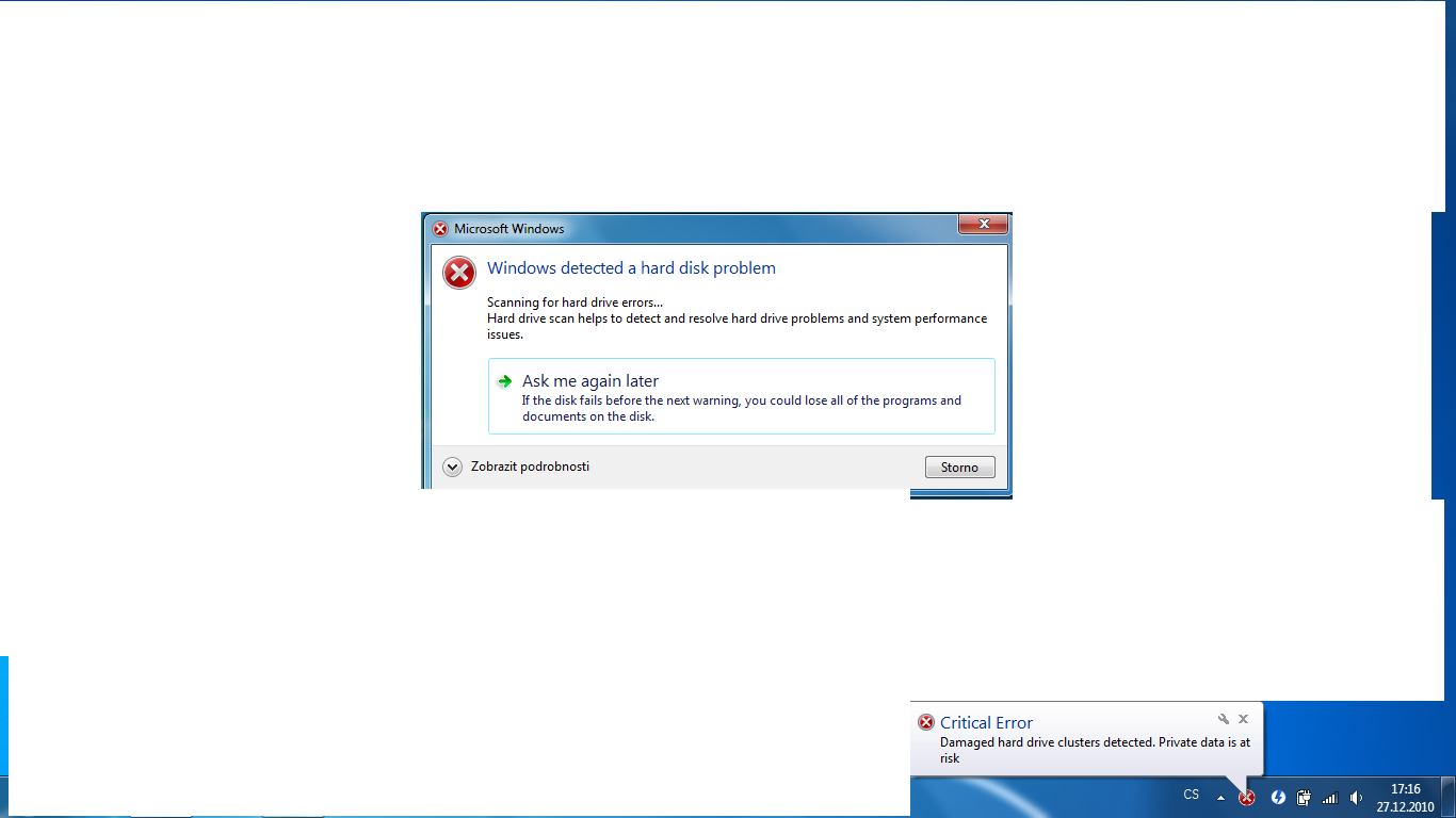 Ahoj, počítač hlásí errory o nefunkčnosti harddisku.. Přikládám screeny, co hlásí za chyby.