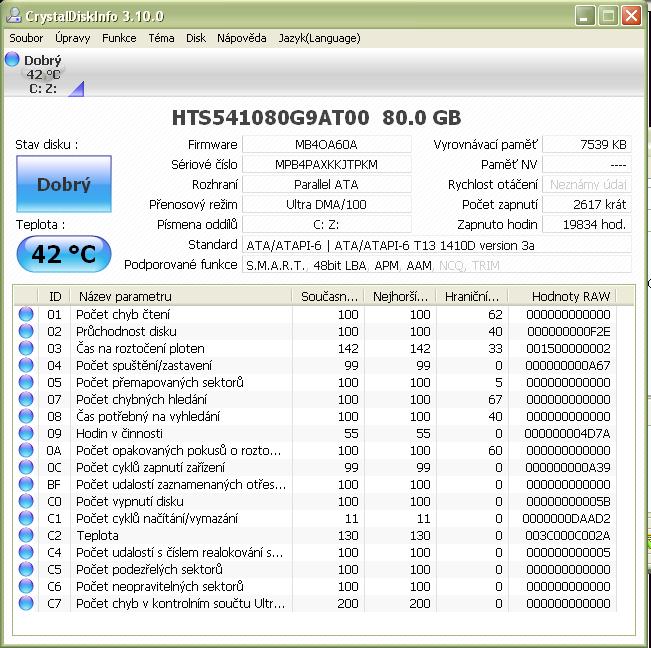 Tak tady je důkaz, že jsem si to nevymyslel :bigups: Je to skrze program CrystalDiskInfo