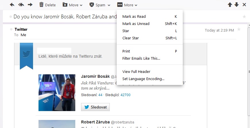 Nebude to tlačítko o jednu položku vlevo? Označit jako spam?