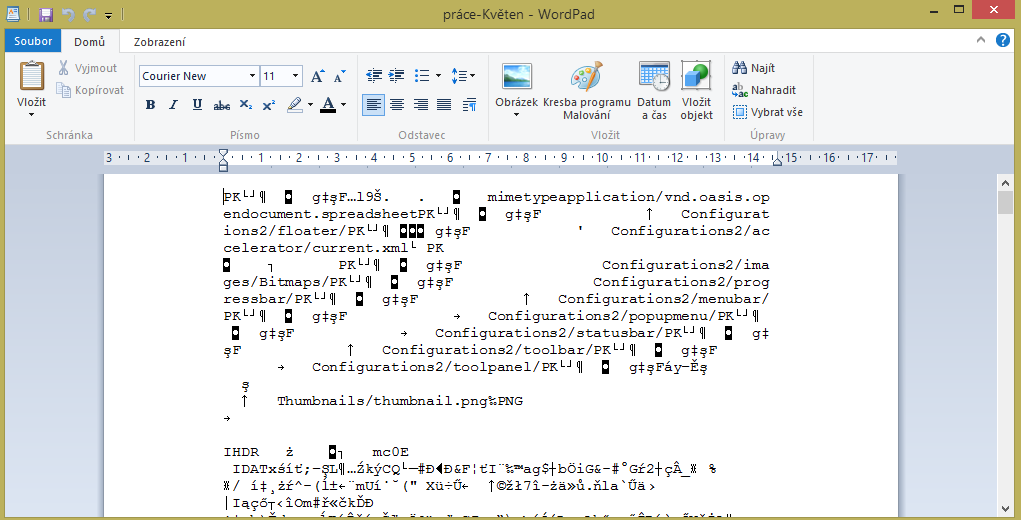 když otevřu můj soubor ve WordPadu, tak místo klasických znaků písmen vidím tzv. hieroglyfy