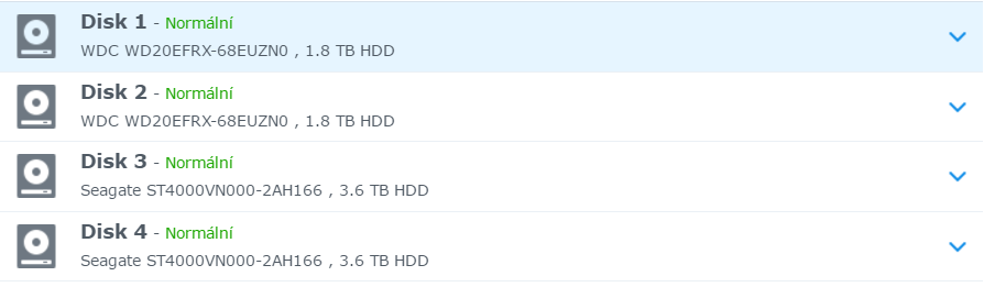 Disky jsou v SHR (https://www.synology.com/cs-cz/knowledg ... d_RAID_SHR) jelikož nejsou stejné kapacity. V podstatě je to RAID s tolerancí jednoho vadného disku.