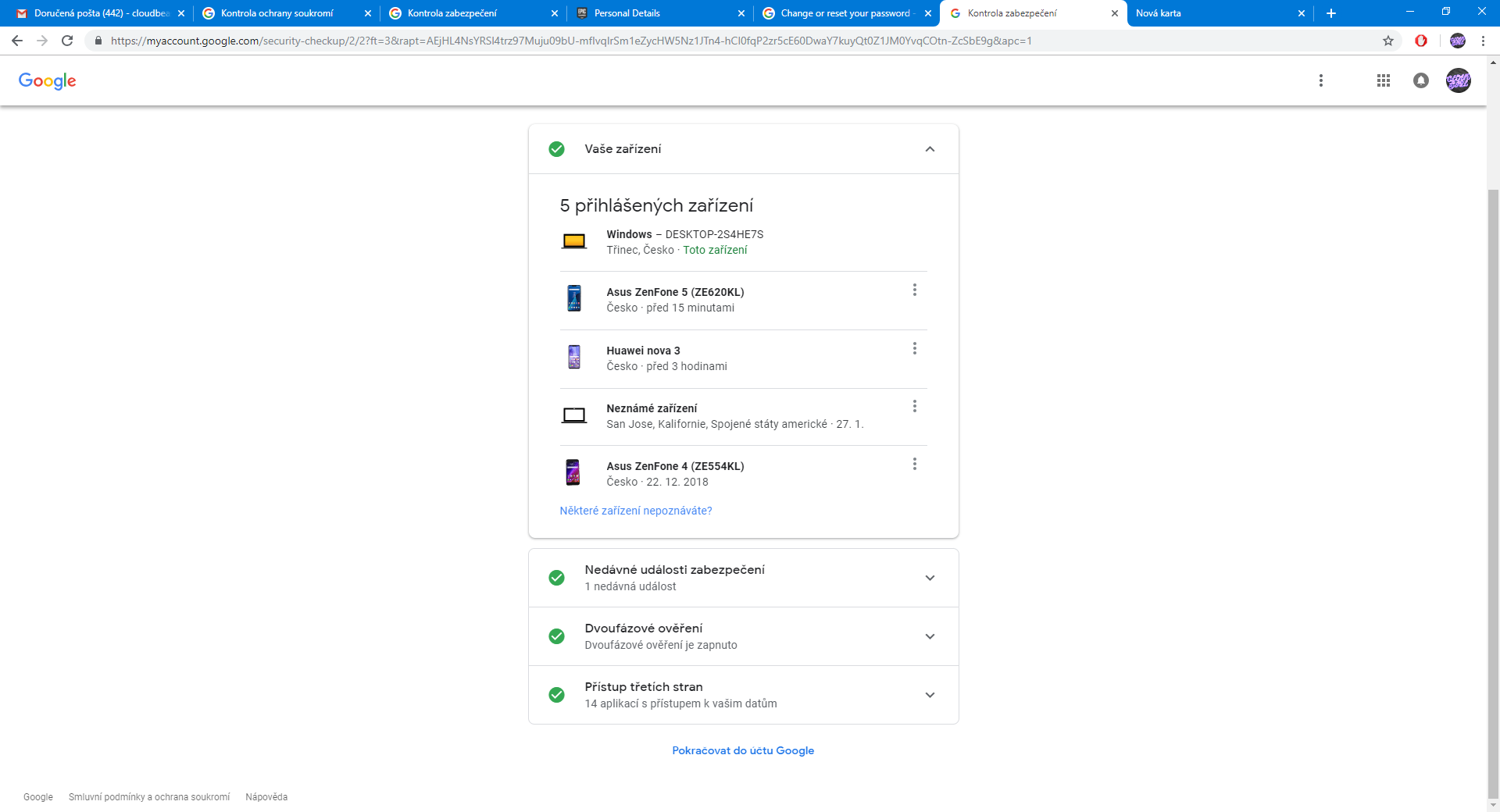 Re: Někdo se naboural do účtu Google Vyřešeno