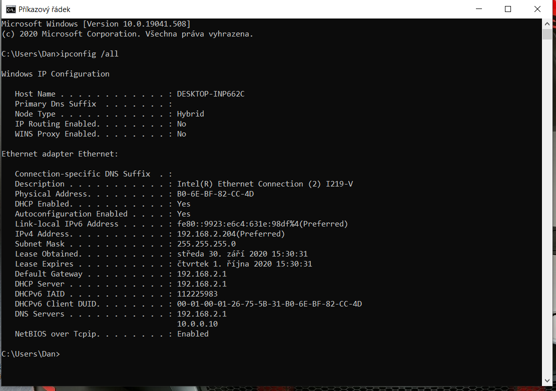 Jsem rád, že čteš návody, ale to co je tam napsáno neplatí, což je jasné už z výpisu ipconfig.