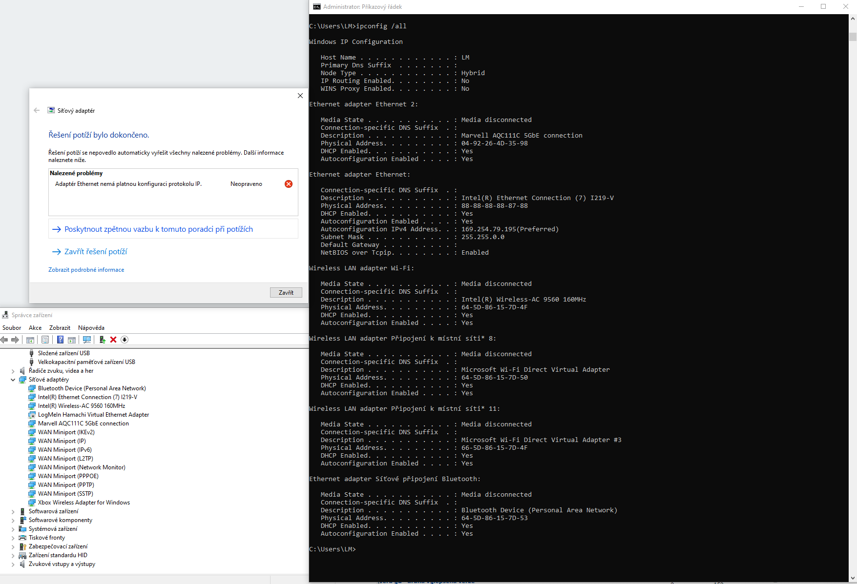 Ahoj, kromě divné MAC adresy z druhého tématu mi teď 2 dny kompletně vypadává síť.