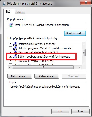 Sdílení souborů a tiskáren podle screenů je na obou PC povoleno.