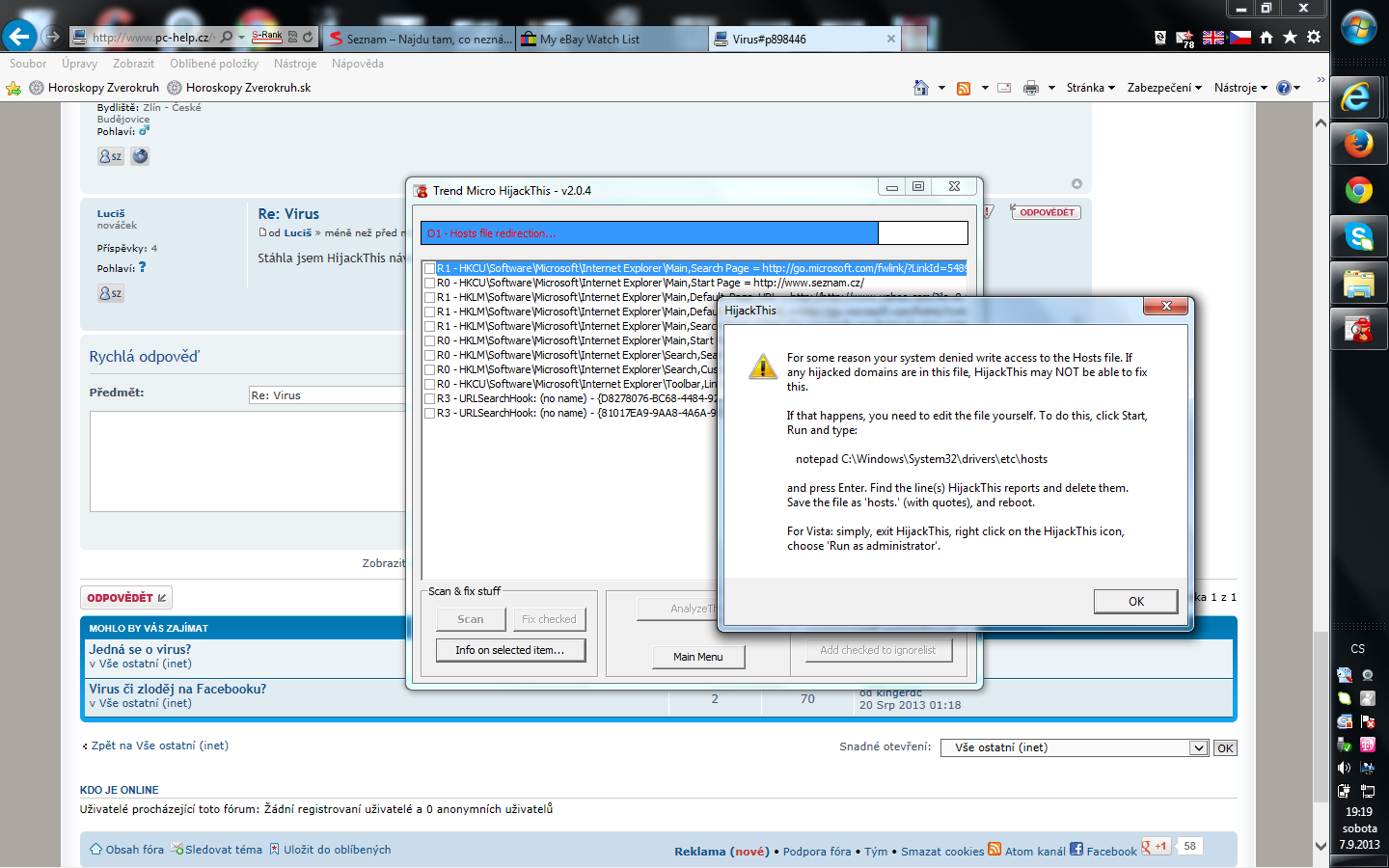 Logy z programu HijackThis neposílejte prosím přes SZ, ale vkládejte je do patřičné sekce. Děkuji