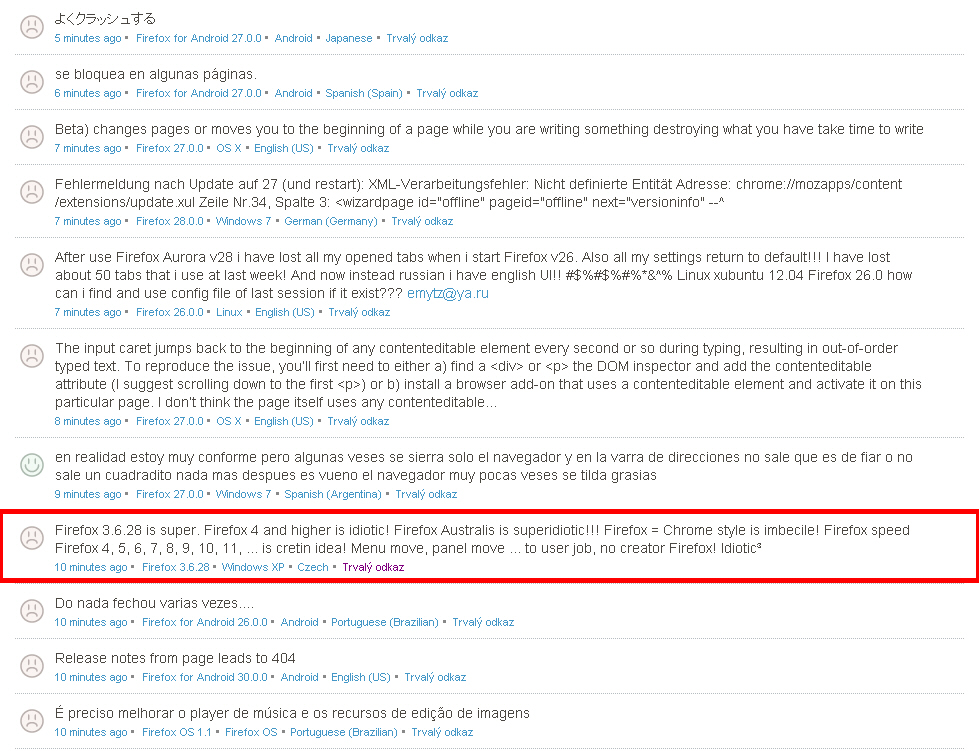 Svěřte se autorům Firefoxu, jak se vám líbí / nelíbí Firefox >>> https://input.mozilla.org/cs/feedback