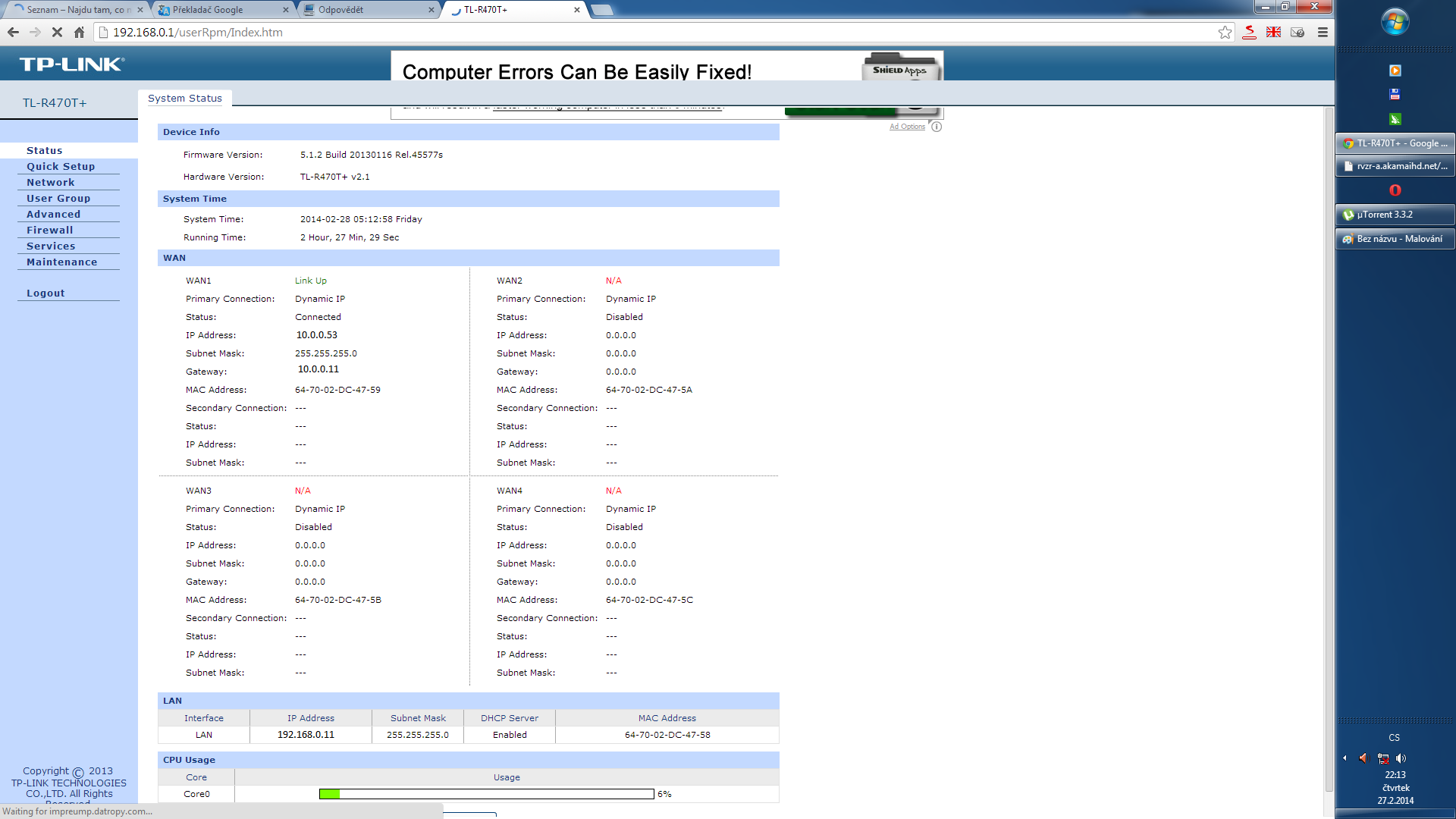Tak zapojil sem to podle toho navodu obe wifi funguji ale nejde mi druhy stolni pc ani tv a zapojeny to mam