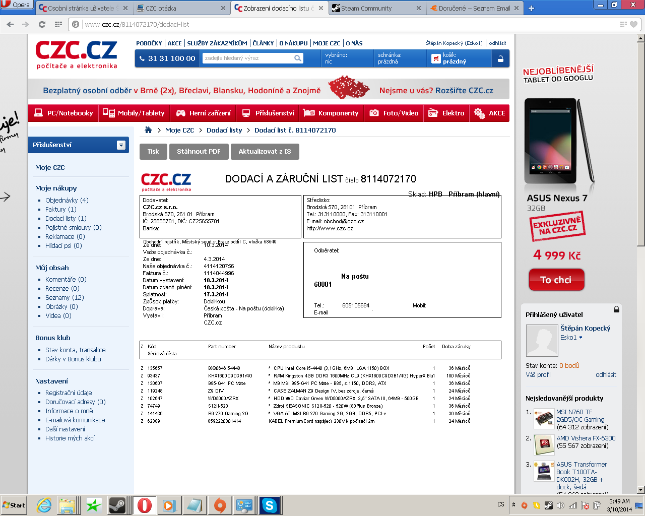 Dobry den jak jsem psal na to že jsem si obědnal PC a mam špatné udaje "telefon a email"