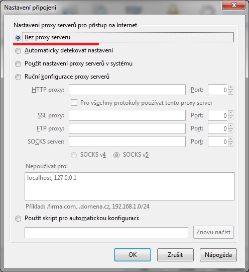 No odškrtnu to použít pro síť Lan server proxy a po cca 2 minutách to tam naskočí opět zpět..