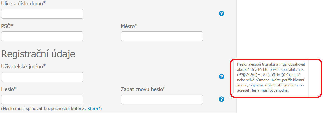 Zdravím dnes jsem se pokusil o registraci na PSC vše je v pohodě pouze heslo mi to furt odmíta... všechny podmínky mám splněné.. ale heslo se vždy zobrazí v červeném políčku nevíte co s tím ?