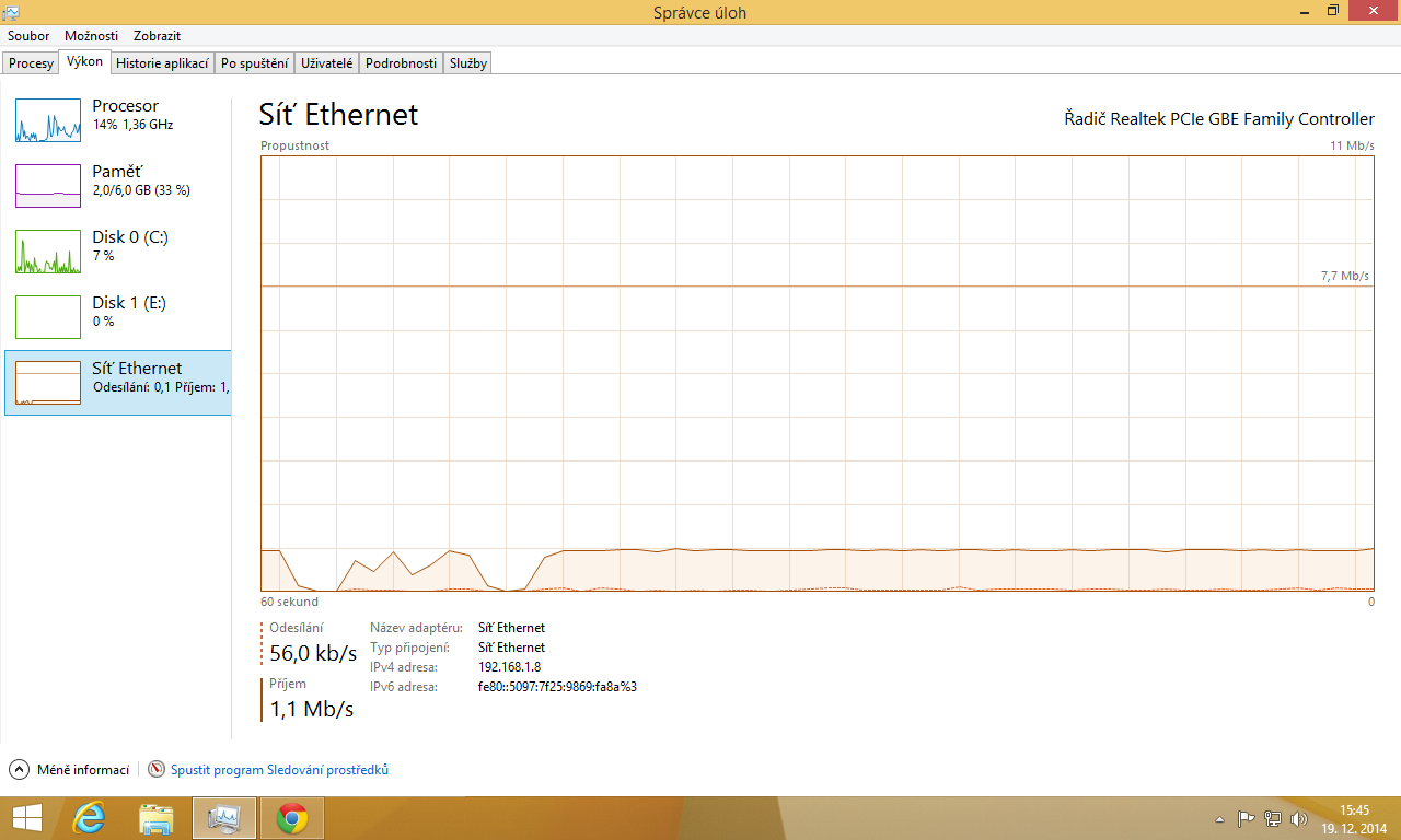 mám problém ohledně rapidního zpomalení internetu na pevném pc (připojeno přes optiku).